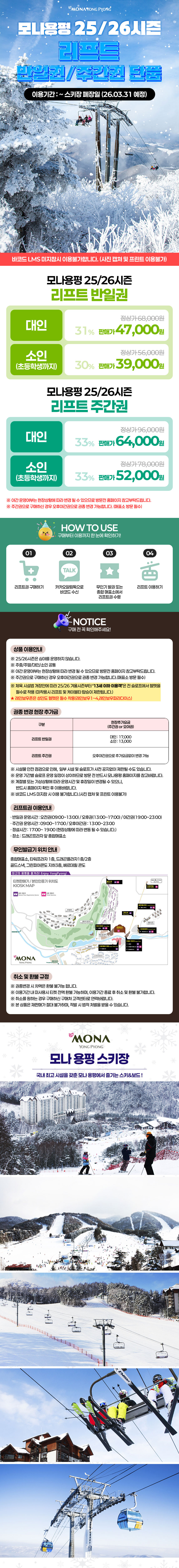 ※ 운영 기간별 슬로프 운영 일정이 상이하므로 방문 전 반드시 용평리조트 홈페이지를 참고바랍니다.