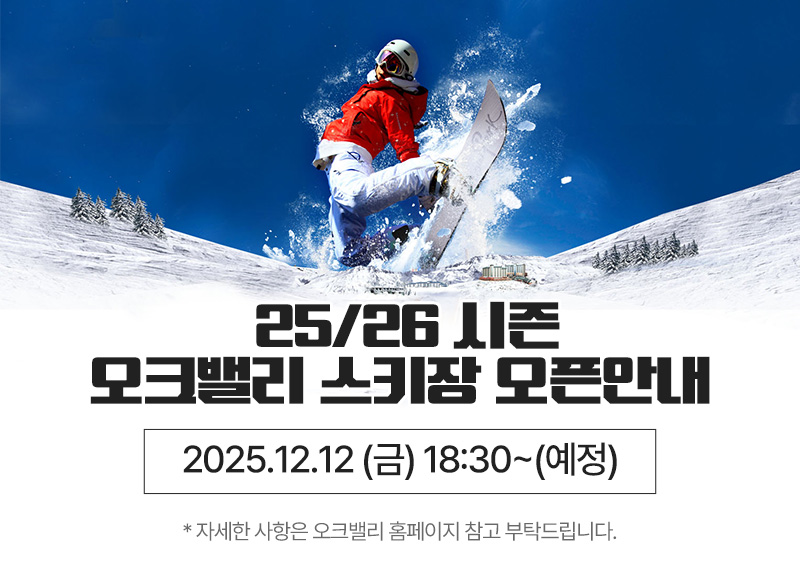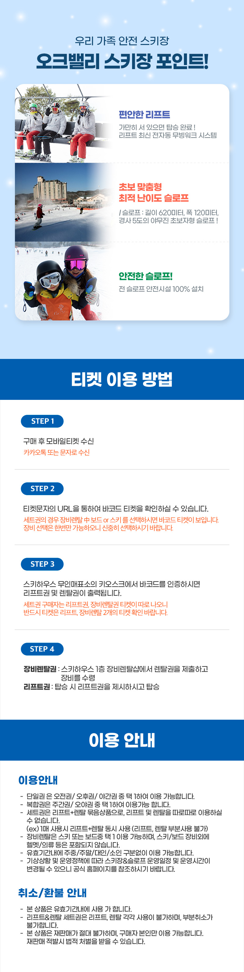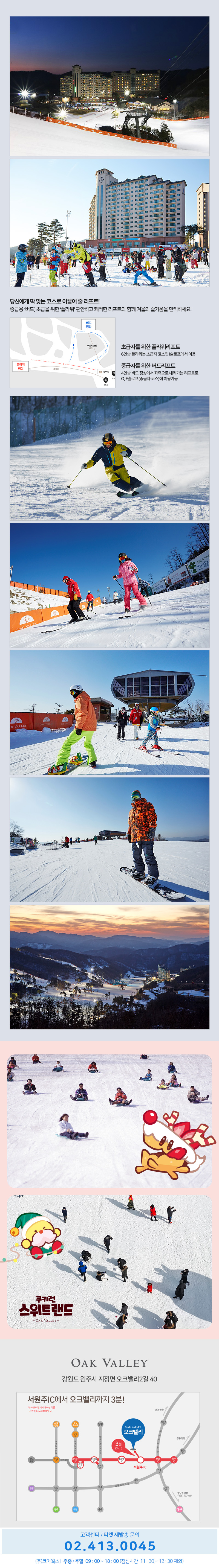 오크밸리 스키장은 우리 가족이 다함께 즐길 수 있는 안전하고 재밌는 스키장이에요.