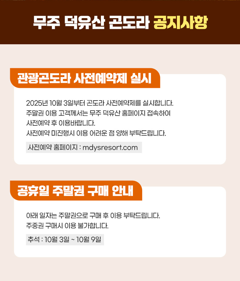 점검 기간 중 관광 곤도라는 운행을 중지하오니 이 점 양해 부탁드립니다.