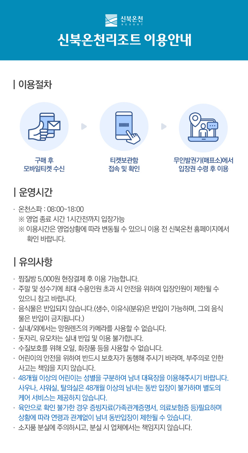 * 이용시간은 영업상황에 따라 변동될 수 있으니 이용 전 신북온천 홈페이지 확인 바랍니다.