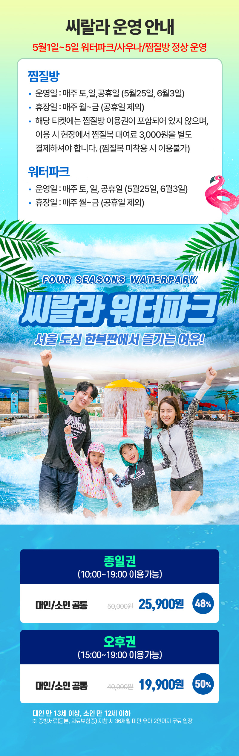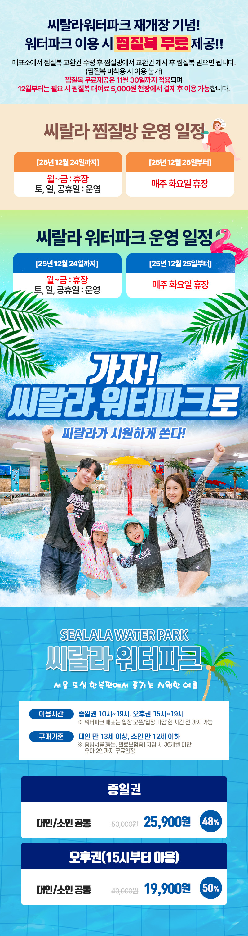 *워터파크 매표는 입장 오픈/입장 마감 한 시간 전 까지만 가능합니다.