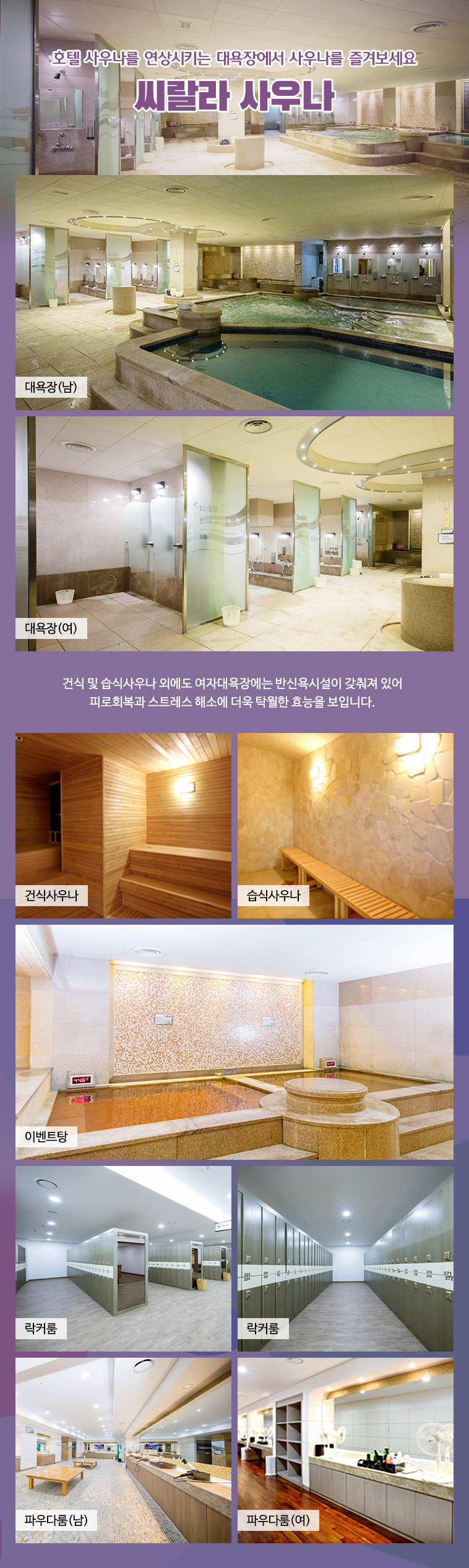 사우나 : 매주 화요일, 수요일 정기 휴장