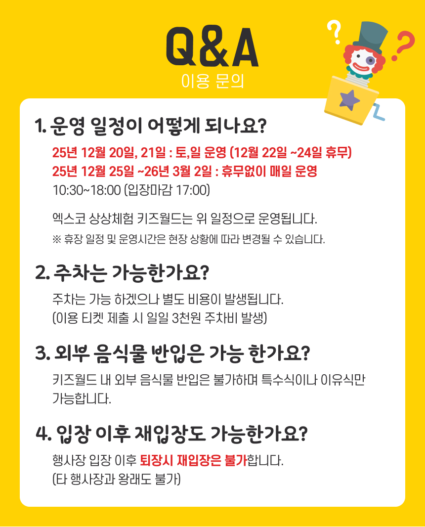 ※ 휴무일&운영일정은 현장상황에 따라 변동될 수 있으며 컨텐츠 참조 바랍니다.