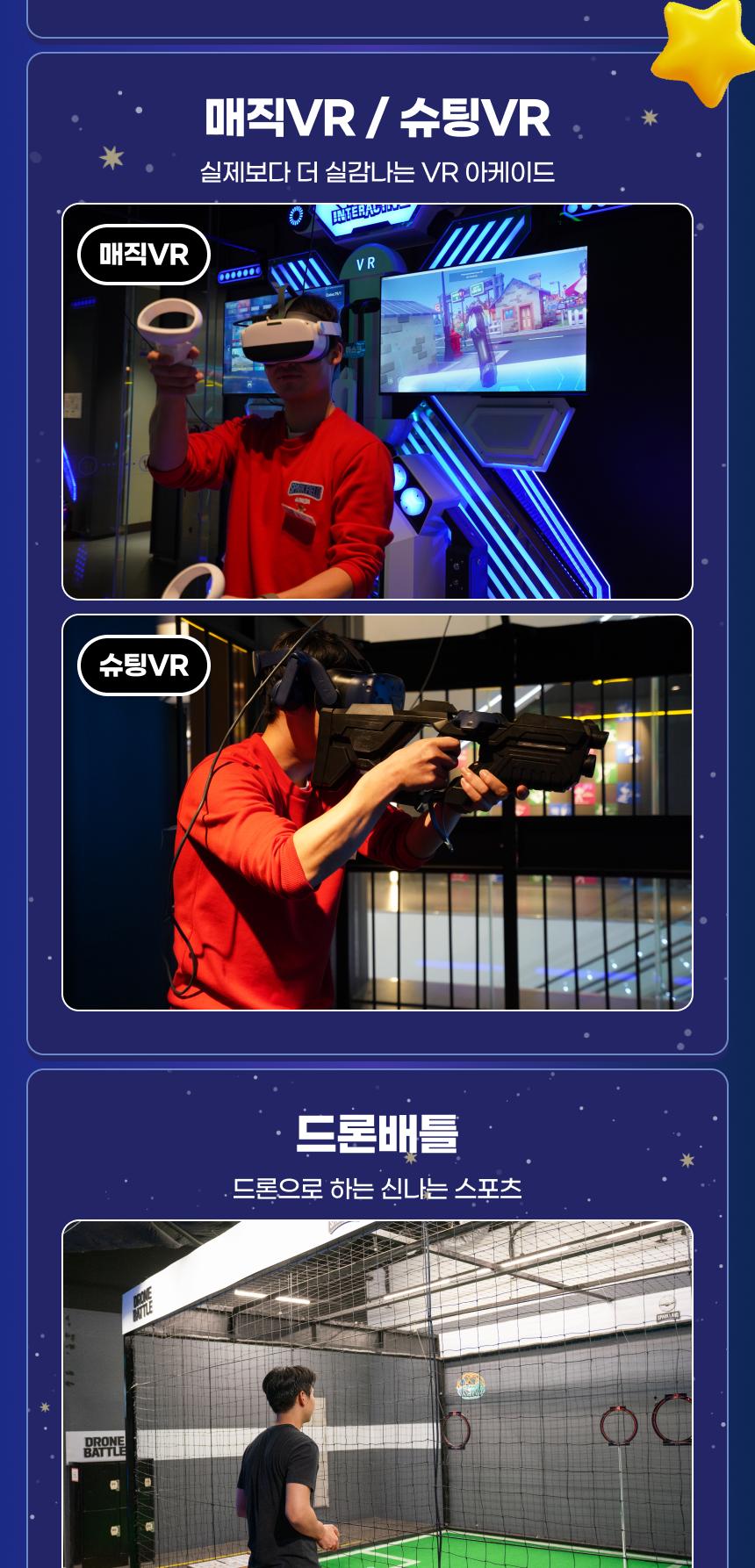 베스트하루종일 실내에서 놀기 가능! 액티비티와 vr게임든 즐길거리가 다양해 좋았어요.