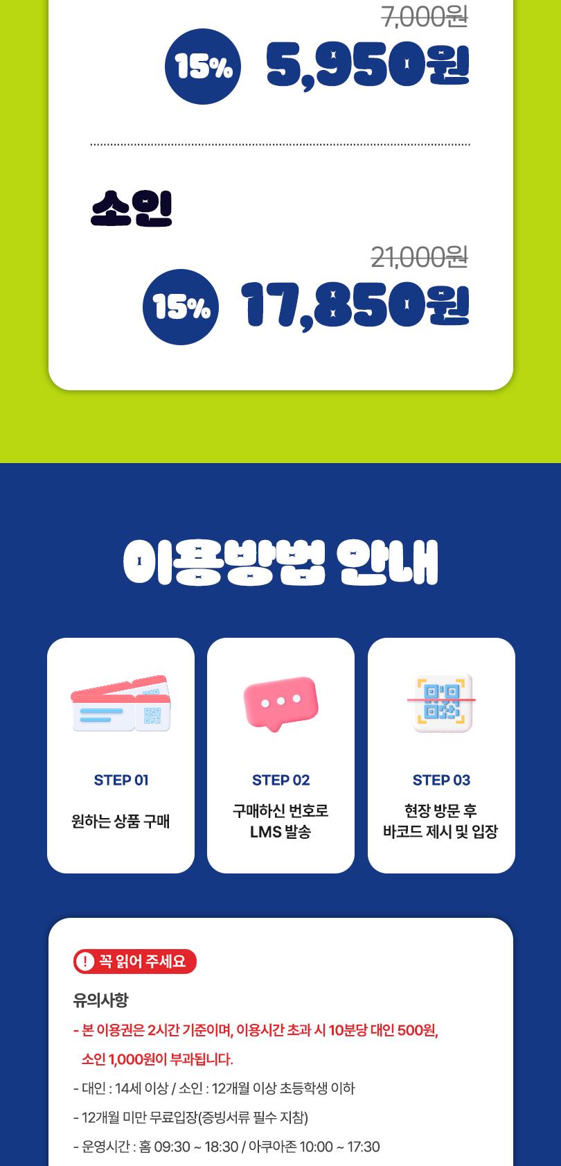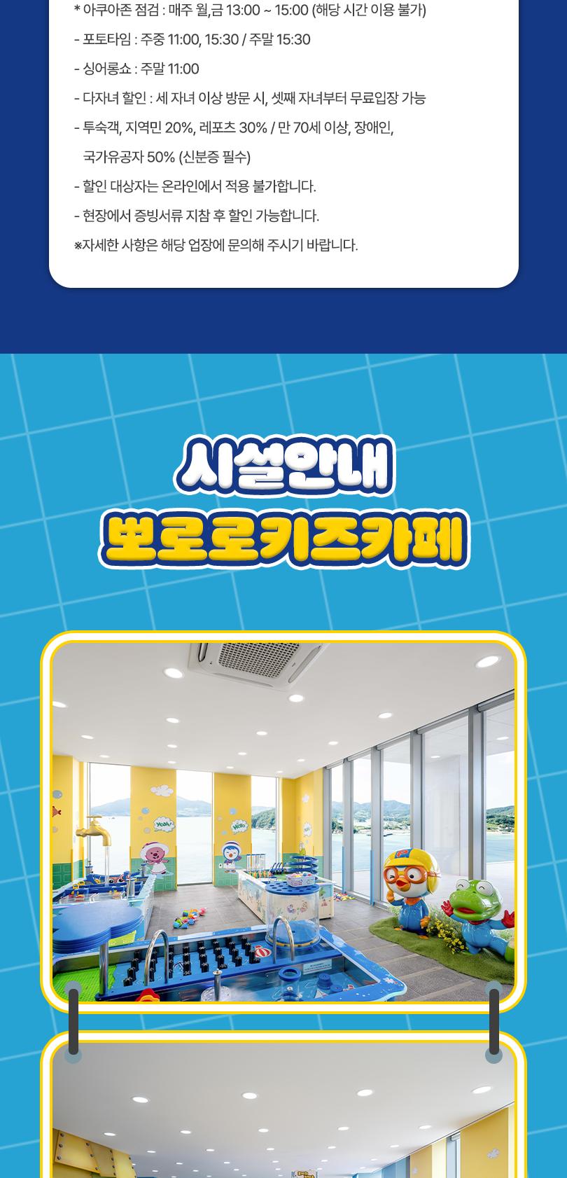 ※ 아쿠아존 점검 : 매주 월, 금 오후 13:00 ~ 오후 15:00 (해당 시간 이용 불가)