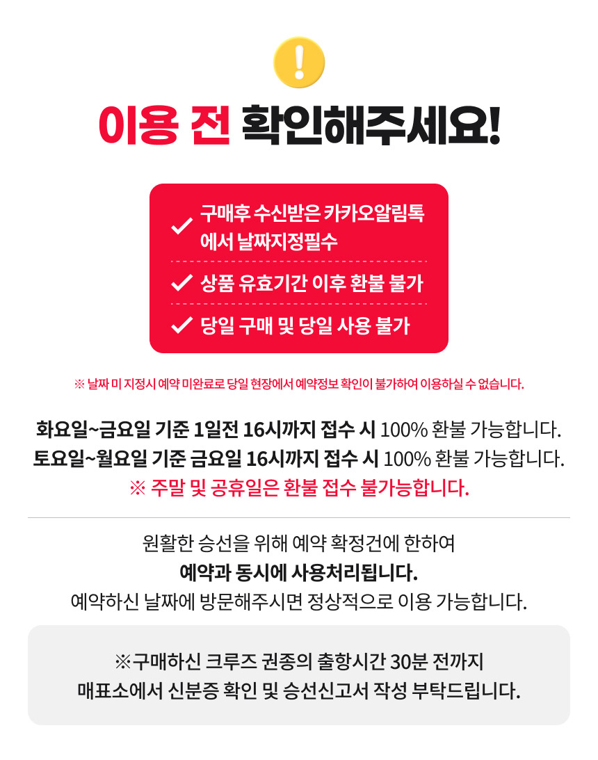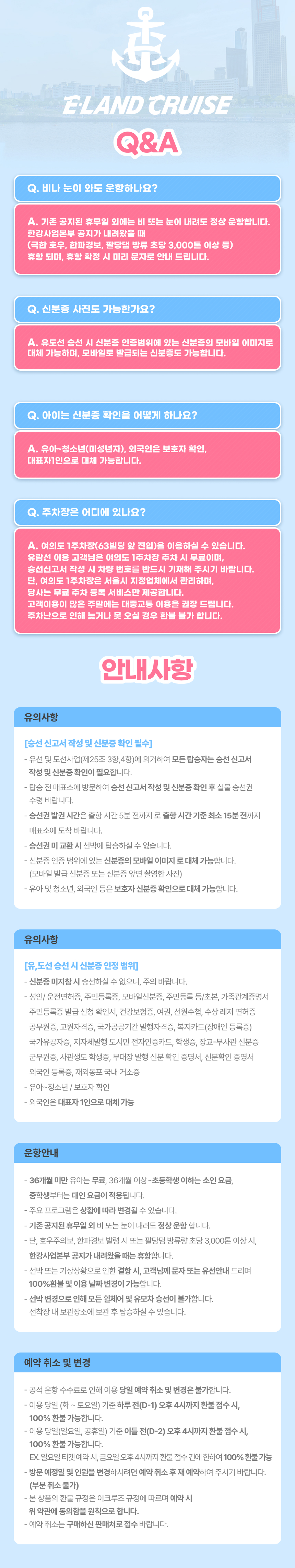※ 컨텐츠 내 크루즈 운행안내 시간 참고하시어 예약 바랍니다.