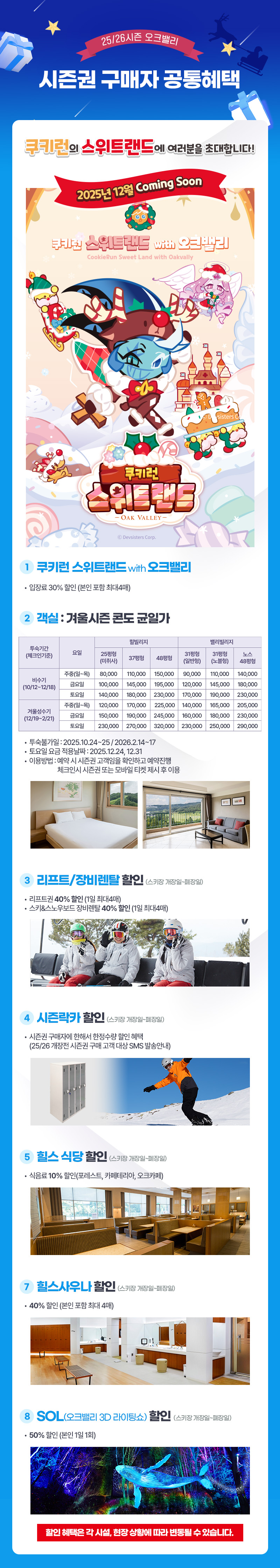 서울에서 단 1시간 반 거리, 스키와 감성, 그리고 쿠키런의 귀여움까지 한 번에 즐기는 특별한 겨울 여행으로 오크밸리 25/26 시즌권과 함께하세요!🎿❄️