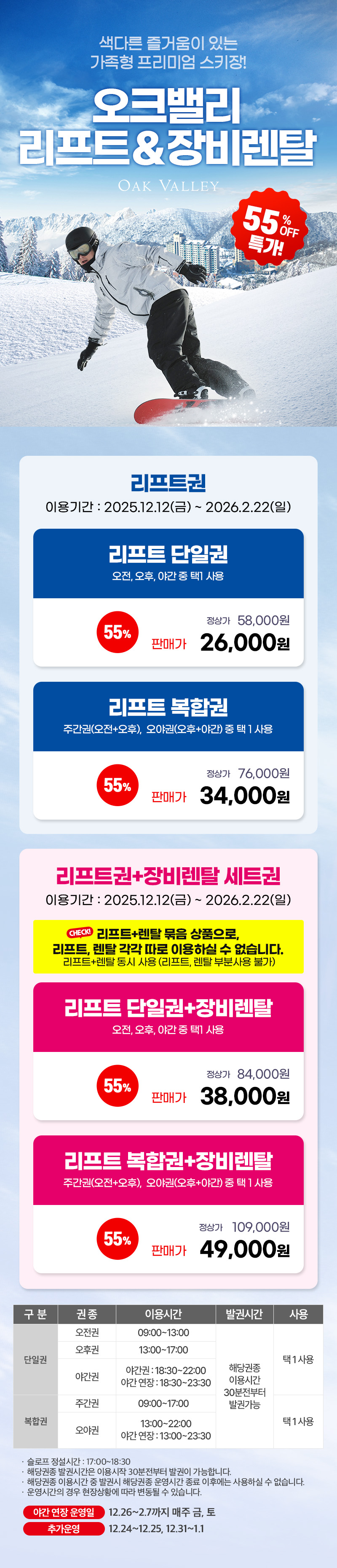* 복합권은 주간권 / 오야권 중 택 1 하여 이용 가능