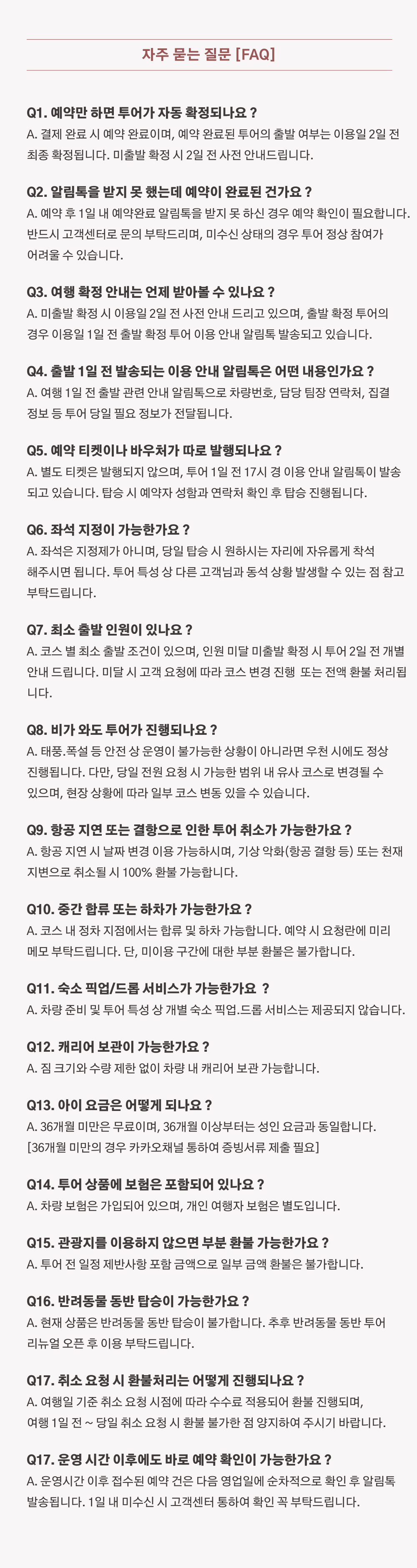 * 출발 5분 전까지 도착 부탁드립니다. 출발 시각 이후 도착 시 개별적으로 합류하여야 합니다.