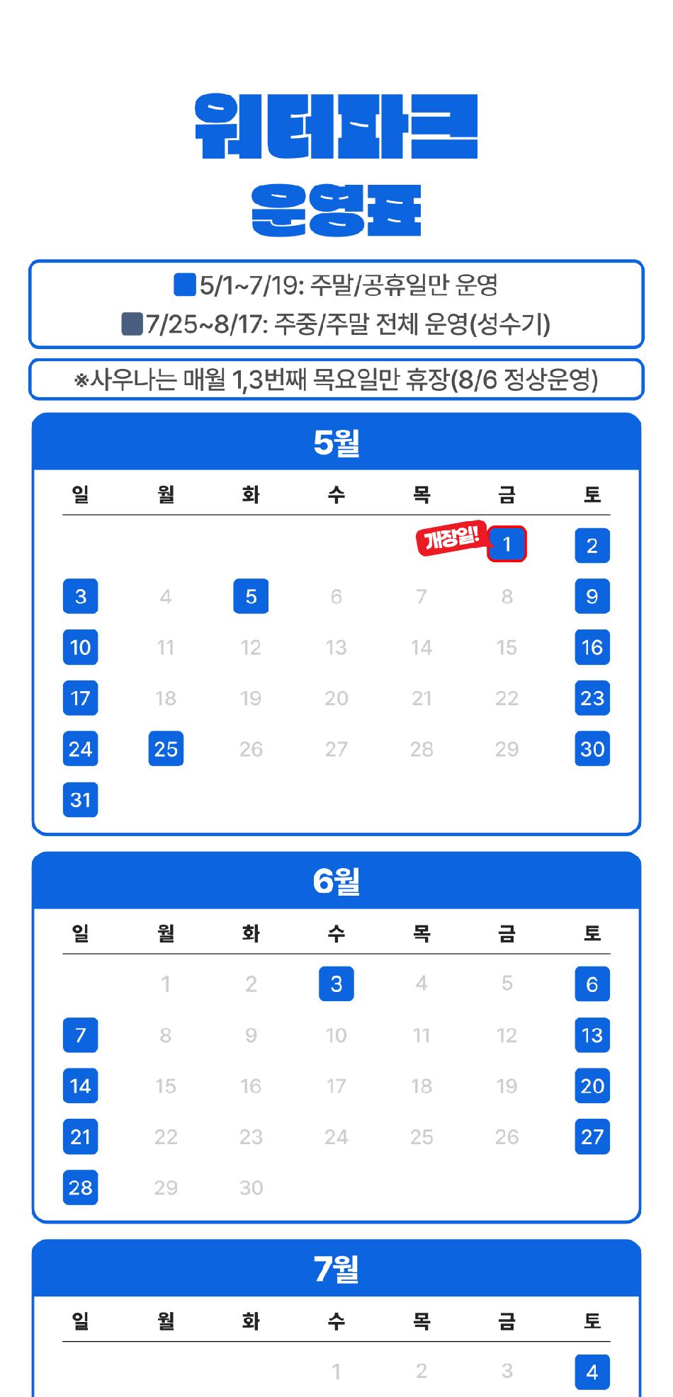 - 사우나 : 매월 1, 3번째 목요일 (8/6 정상운영)