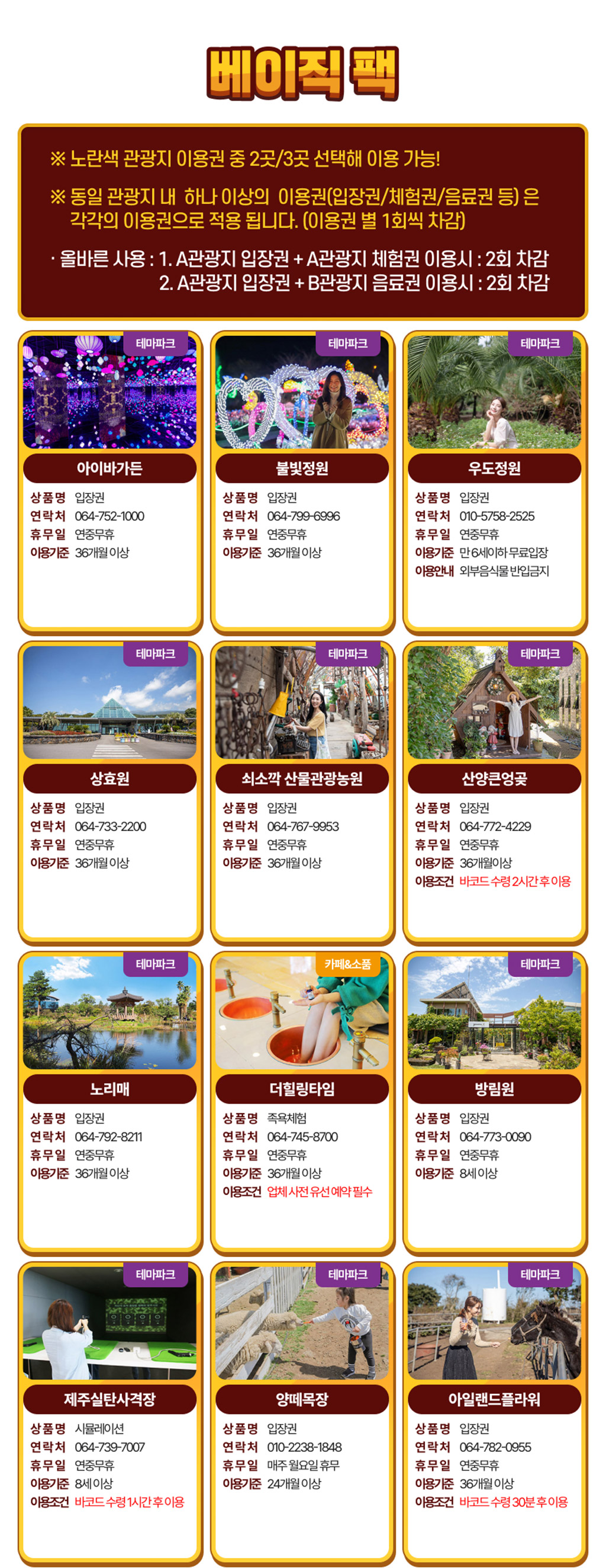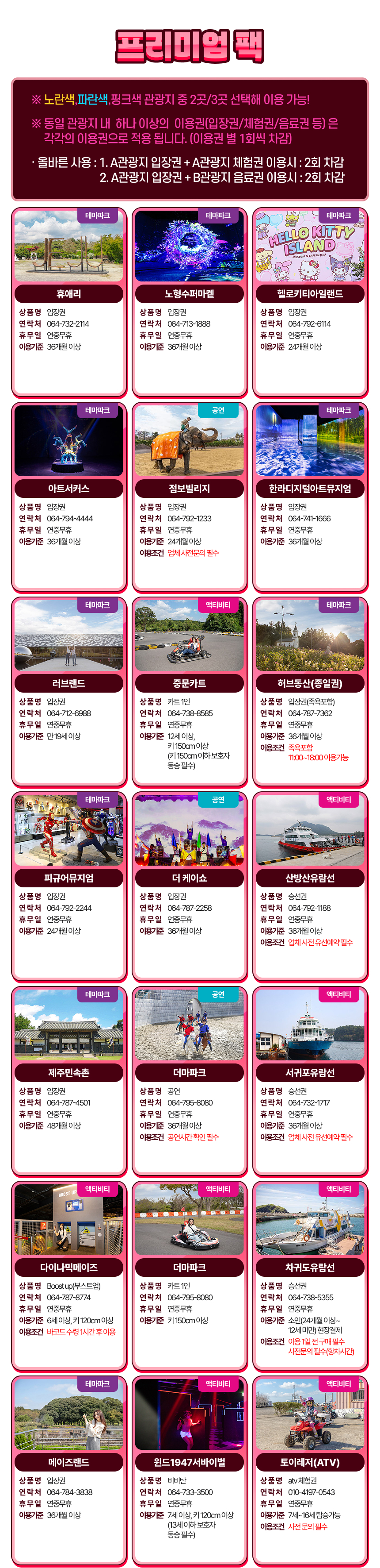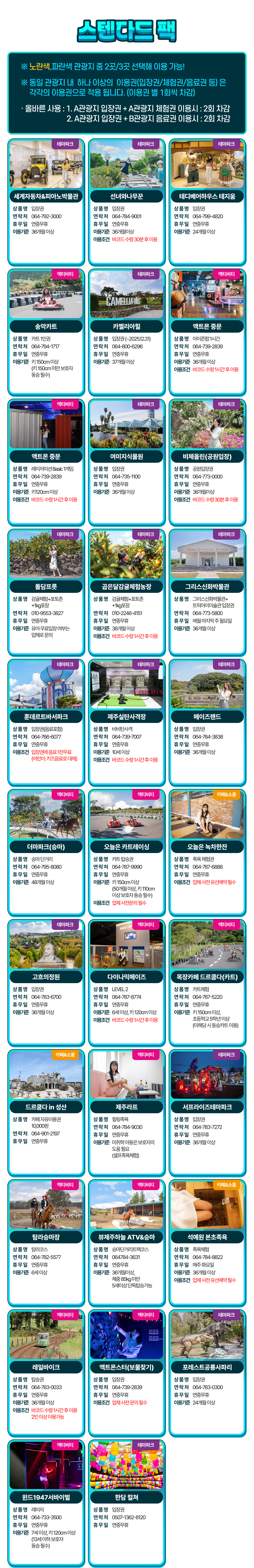 원하는 여행지나 코스에 맞춰 고를 수 있는 타임제로 자유이용권을 여러분께 소개해요. 제주 여행에서 필수로 방문해야 할 모든 명소를 포함한 티켓이에요. 이용 가능 여행지는 실시간으로 변경 될 수 있으니 모바일 티켓의 '투어패스 이용가능 여행지'를 꼭 확인하고 구입하시길 추천드려요.