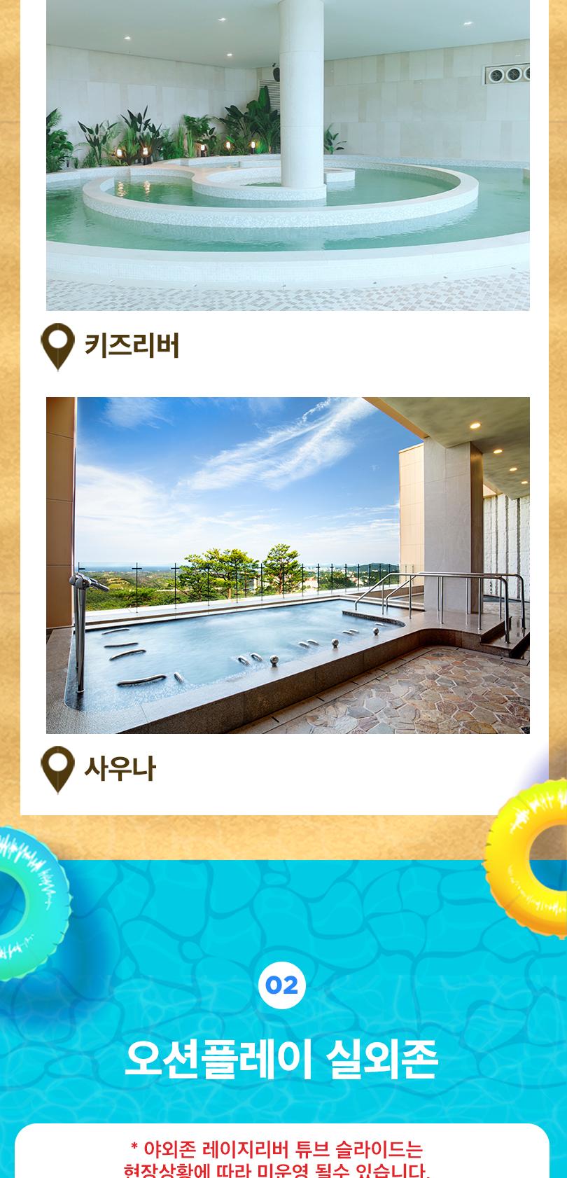 일상 속 스트레스와 피곤에서 벗어나 온 가족이 느낄 수 있는 즐거움! 델피노 오션플레이와 함께 여유로운 고성 여행을 떠나볼까요? 깨끗한 온천수로 물놀이와 스파를 즐겨보세요. 아이들을 위한 키즈 플레이 존과 키즈리버 등 실내, 외로 구분되어 다양한 체험을 할 수 있어요.