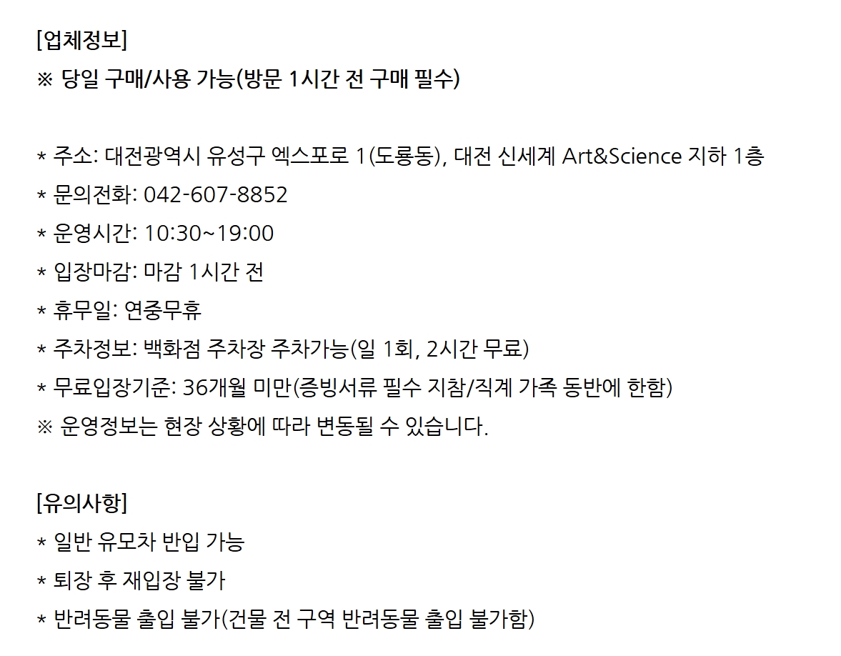 대전광역시 유성구 엑스포로 1(도룡동), 대전 신세계 Art&Science 지하 1층