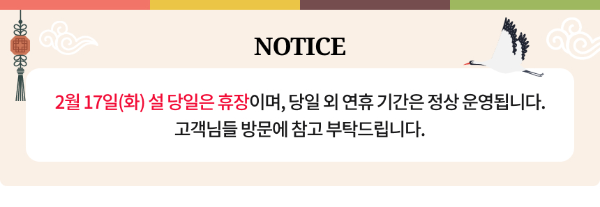 ※ 운영시간 및 휴장일정은 현장 사정에 따라 변경 될 수 있습니다. 방문 전 확인 후 방문 부탁드립니다.