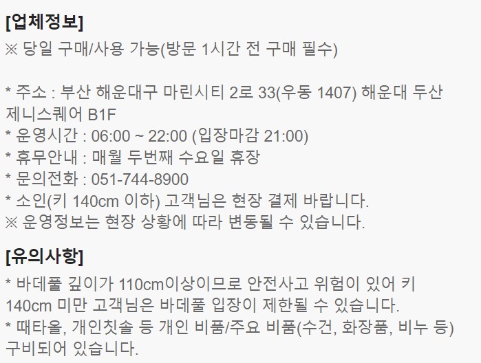 부산 해운대구 마린시티 2로 33(우동 1407) 해운대 두산 제니스퀘어 B1F