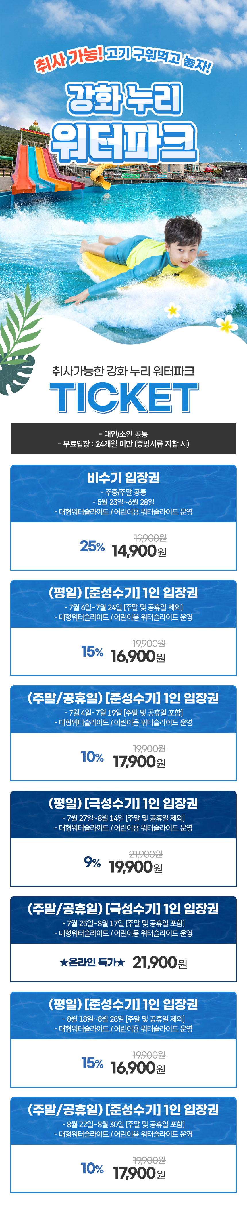 지금 바로 할인된 가격에 누리워터파크로 여름휴가를 떠나보세요!
