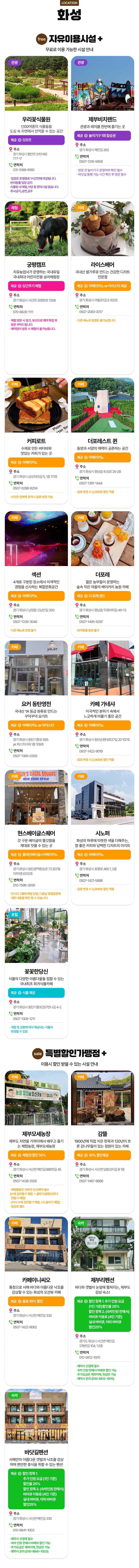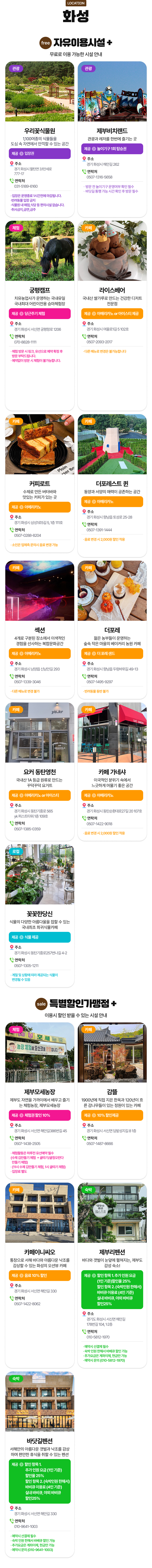 해당 투어패스는 화성의 여행지, 카페 등의 제휴처에서 무제한 혜택을 받을 수 있어 여러 곳을 방문하고 특별한 추억을 만들기에 좋아요. 가성비 넘치는 화성투어패스와 함께 똑똑한 여행을 떠나보세요.