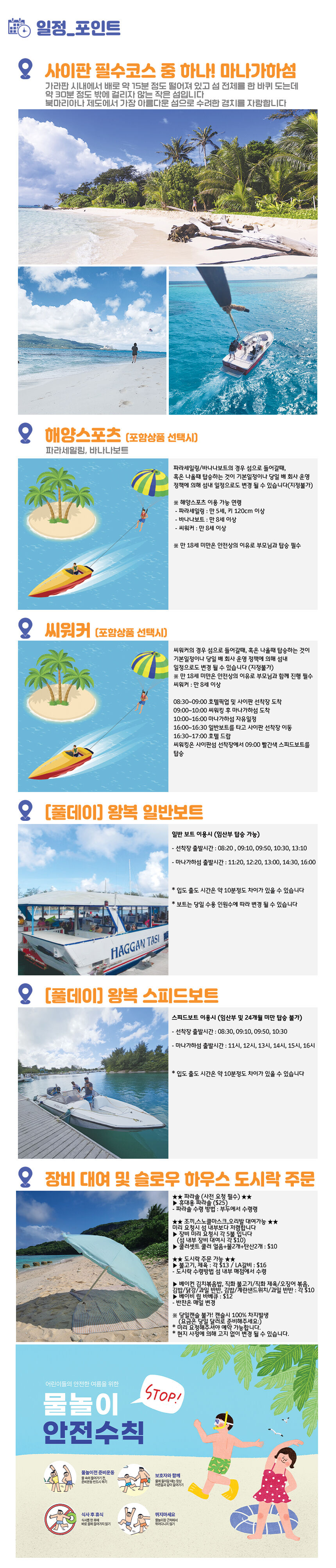 베스트마하가나섬 이번이 세번째인데 저렴한가격에 요청사항도 젤 잘 맞춰주고 파라세일링 할때도 사진,동영상 직접 찍어주셔서 너무 만족스러웠습니다.
