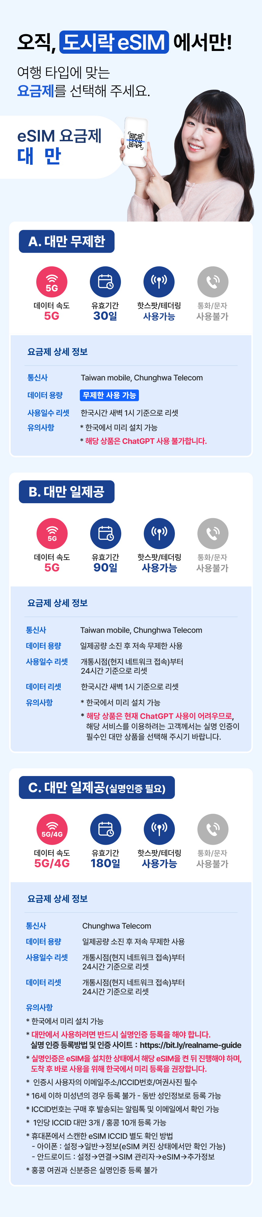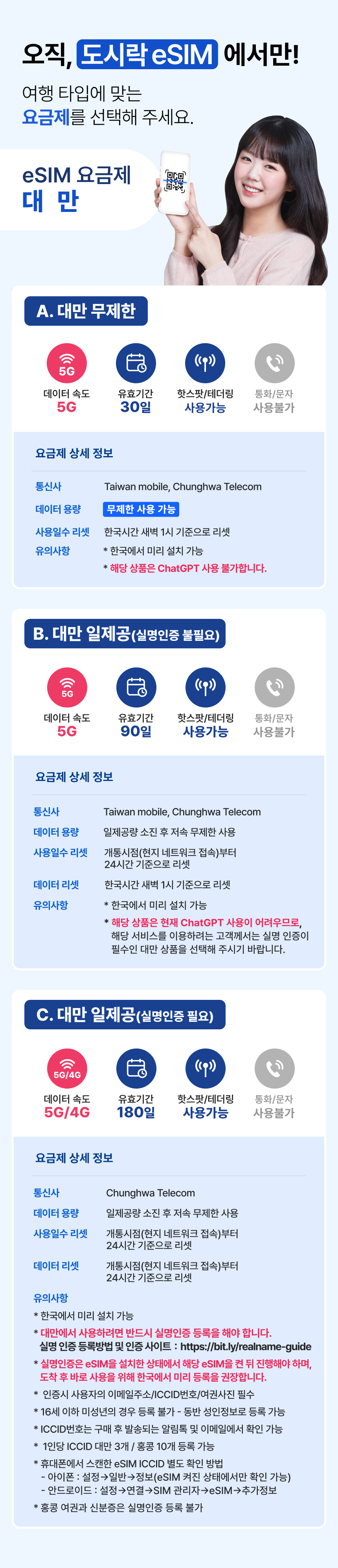 주문 이후 24시간 안에 QR코드를 전달드려 수령할 필요 없이 바로 사용이 가능한 eSIM을 소개해요. 기존 SIM 카드를 분리하고 따로 보관할 필요가 없으며 파손, 분실 걱정 없어 더욱 편리하게 사용할 수 있어요. 합리적인 가격과 현지 데이터만 구매해 이용할 수 있어 좋아요. 이제 구입 후 QR코드로 바로 휴대폰에 등록해 사용해 보세요!
