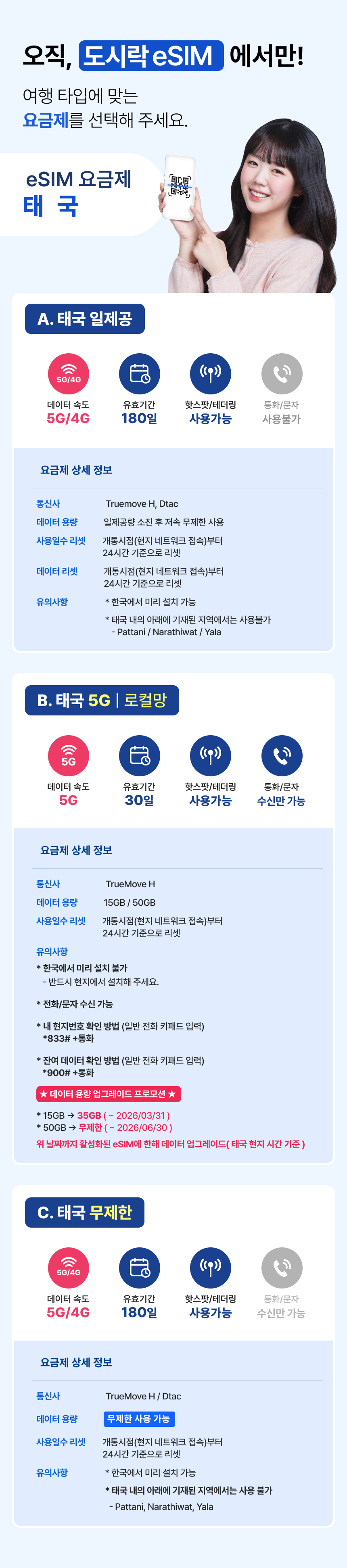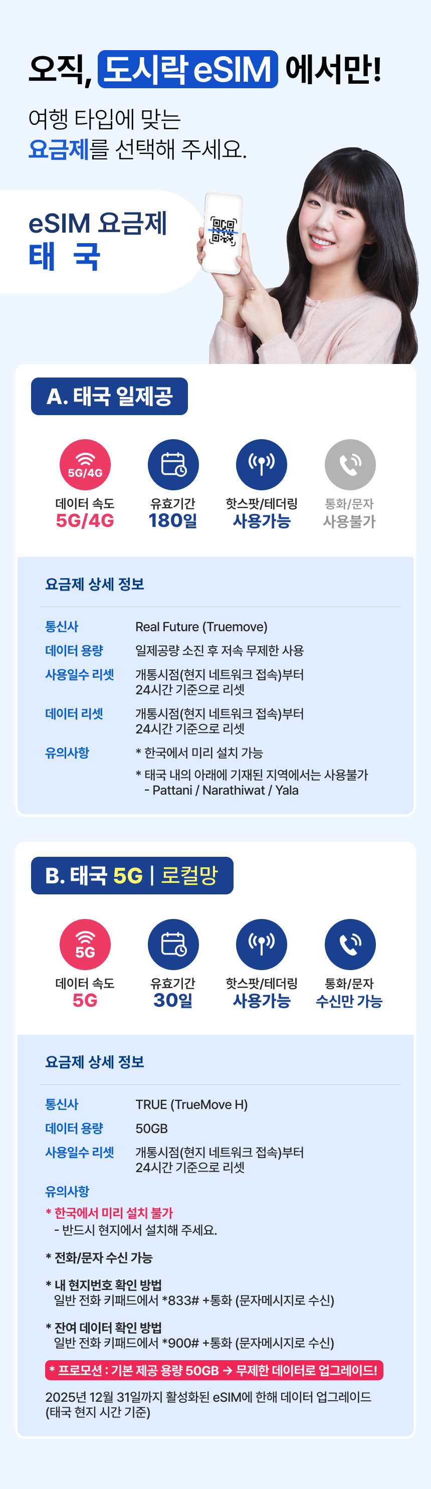 주문 이후 24시간 내 QR코드를 전달드려 수령할 필요 없이 바로 사용이 가능한 eSIM을 소개해요. 기존 SIM 카드를 분리하고 따로 보관할 필요가 없으며 파손, 분실 걱정 없어 더욱 편리하게 사용할 수 있어요. 합리적인 가격과 현지 데이터만 구매해 이용할 수 있어 좋아요. 이제 구입 후 QR코드로 바로 휴대폰에 등록해 사용해 보세요!