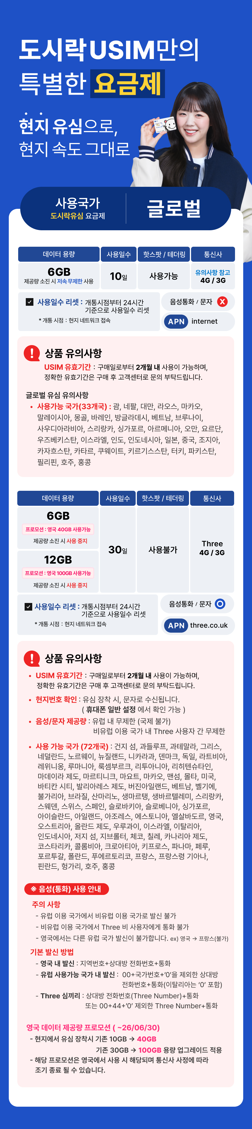 안 써본 사람은 있어도 한 번만 써본 사람은 없는 국내 최대, 최고의 로밍 전문기업 와이파이 도시락의 글로벌 유심을 소개해요. 현지 유심으로 사용하기 때문에 속도 걱정 없이 여행할 수 있어요. 넉넉한 데이터 용량은 물론이고, 와이파이 도시락은 전국 주요 공항 로밍센터를 운영하고 있어 더욱 편리하게 이용할 수 있어요.