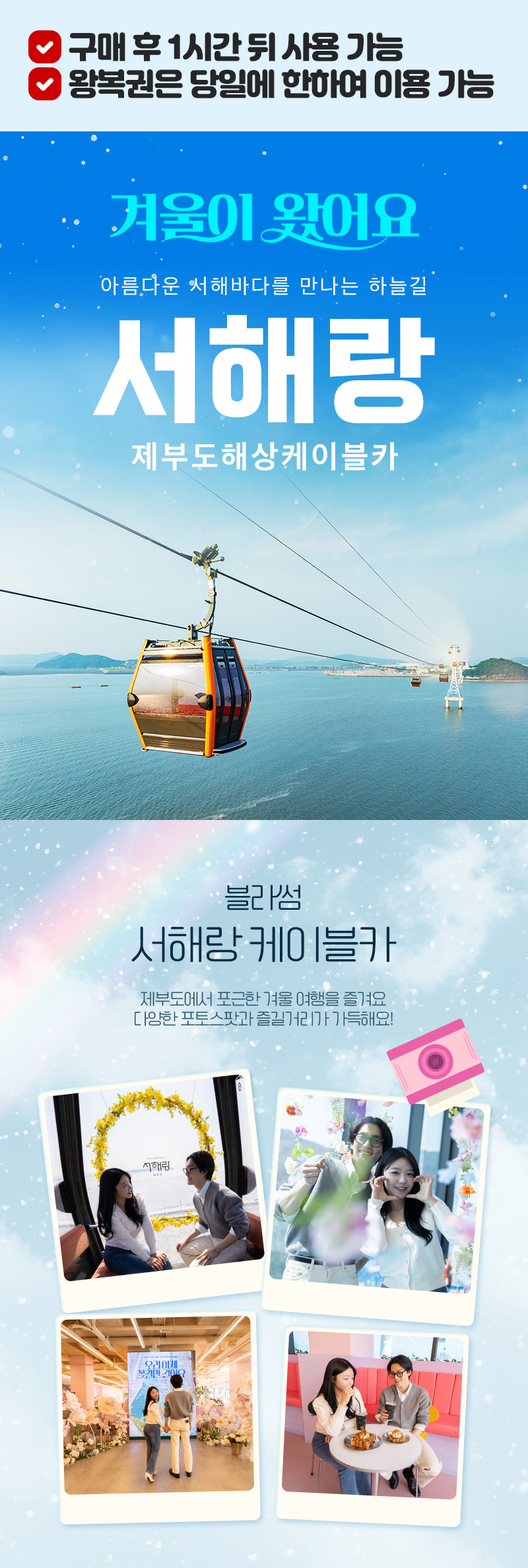 ※ 기상상황 악화 및 케이블카의 안전상 이유로 사전에 공지없이 조기운행 마감 또는 휴장될 수 있습니다.