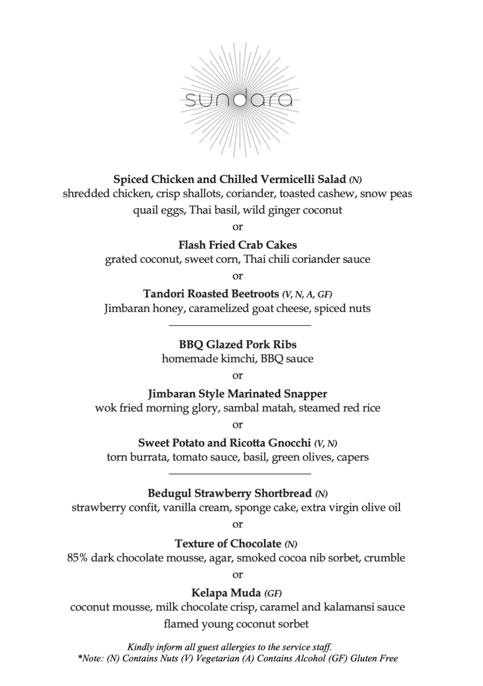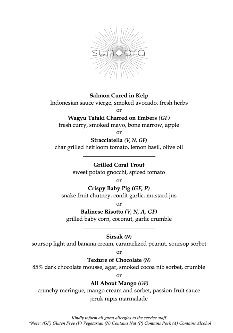 산스크리트어로 "아름답다"라는 뜻의 순다라는 포시즌스 리조트 발리에서 가장 인기있는 레스토랑이에요. 특히 인피니티 풀은 바다와 연결되어 있는 듯한 착각을 주는 멋진 전망을 자랑해요. 순다라 레스토랑은 현대적인 인도네시아 요리를 제공하며, 바닷가 레스토랑에서는 신선한 해산물 요리를 맛볼 수 있어요.