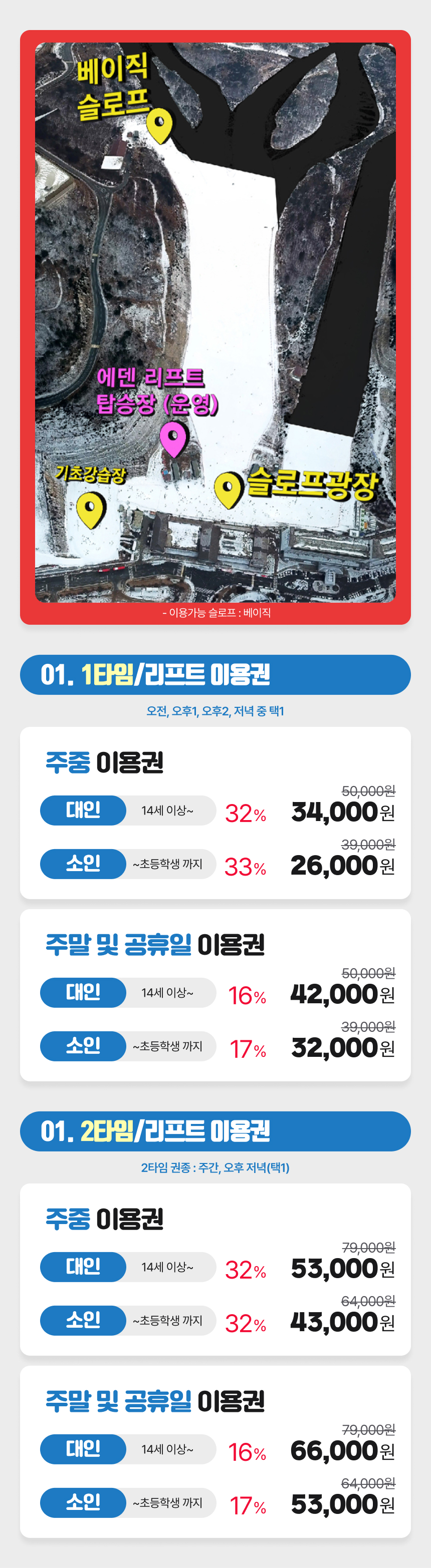 에덴밸리는 리조트 직영 판매 상품이라 믿을 수 있고, 관리가 꼼꼼해 장비 상태나 슬로프 컨디션도 항상 신뢰할 수 있어요. 스키와 보드를 처음 시작하는 분들을 위한 베이직 슬로프가 갖춰져 있고, 리프트를 통해 편안하게 올라가며 겨울 산의 공기를 만끽할 수 있어요. 처음 타보는 초보자도, 오랜만에 감을 되찾고 싶은 사람도 부담 없이 즐길 수 있는 환경입니다. 스키장 규모는 과하지 않지만 그만큼 동선이 편하고 이용이 쉬워요. 기다림이 길지 않아 아이들과 함께 와도 좋고, 짧은 시간 동안도 충분히 알찬 라이딩을 할 수 있어요. 초보자에게는 친절한 강습이 준비되어 있고, 경험자에게는 눈 위를 미끄러지는 속도감과 겨울 밤의 스릴이 즐거움을 더해줍니다.