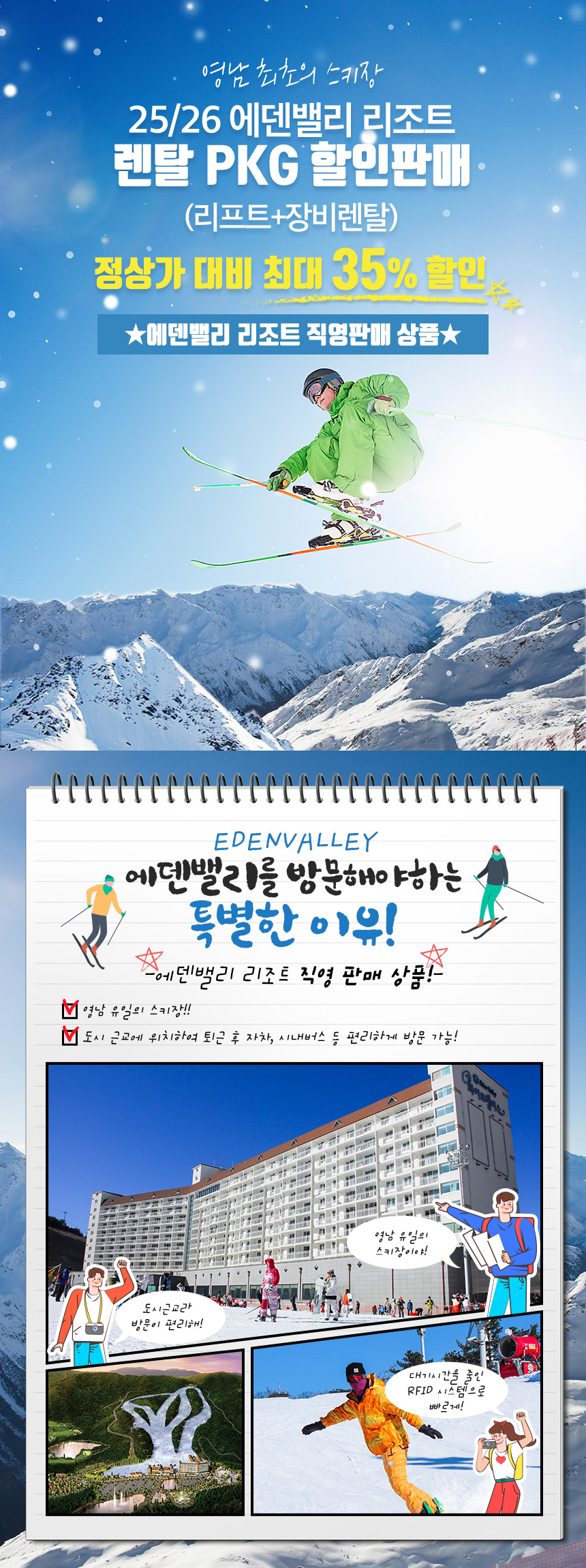 겨울만 오면 멀리 가지 않아도 되는 이유가 생깁니다. 도심 근처에서 만나는 설경, 한 시간이 채 안 되는 이동만으로 스키와 눈을 즐길 수 있는 특별한 곳, 영남 최고의 도시 근교 스키장. 올 겨울은 에덴밸리 리조트에서 가볍게, 그러나 제대로 즐겨보세요. ❄️🎿⛷️