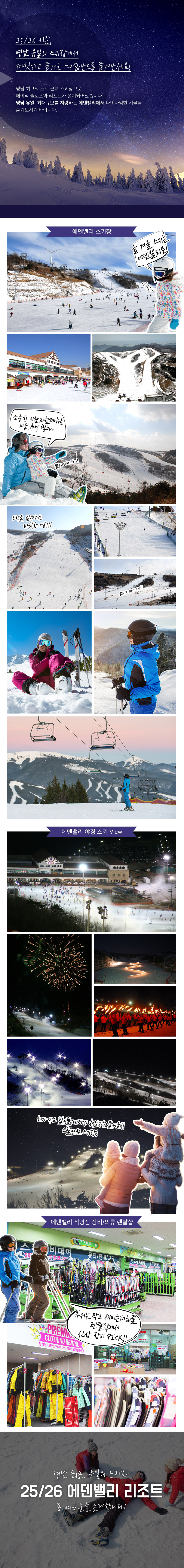 에덴밸리는 리조트 직영 판매 상품이라 믿을 수 있고, 관리가 꼼꼼해 장비 상태나 슬로프 컨디션도 항상 신뢰할 수 있어요. 스키와 보드를 처음 시작하는 분들을 위한 베이직 슬로프가 갖춰져 있고, 리프트를 통해 편안하게 올라가며 겨울 산의 공기를 만끽할 수 있어요. 처음 타보는 초보자도, 오랜만에 감을 되찾고 싶은 사람도 부담 없이 즐길 수 있는 환경입니다. 스키장 규모는 과하지 않지만 그만큼 동선이 편하고 이용이 쉬워요. 기다림이 길지 않아 아이들과 함께 와도 좋고, 짧은 시간 동안도 충분히 알찬 라이딩을 할 수 있어요. 초보자에게는 친절한 강습이 준비되어 있고, 경험자에게는 눈 위를 미끄러지는 속도감과 겨울 밤의 스릴이 즐거움을 더해줍니다.