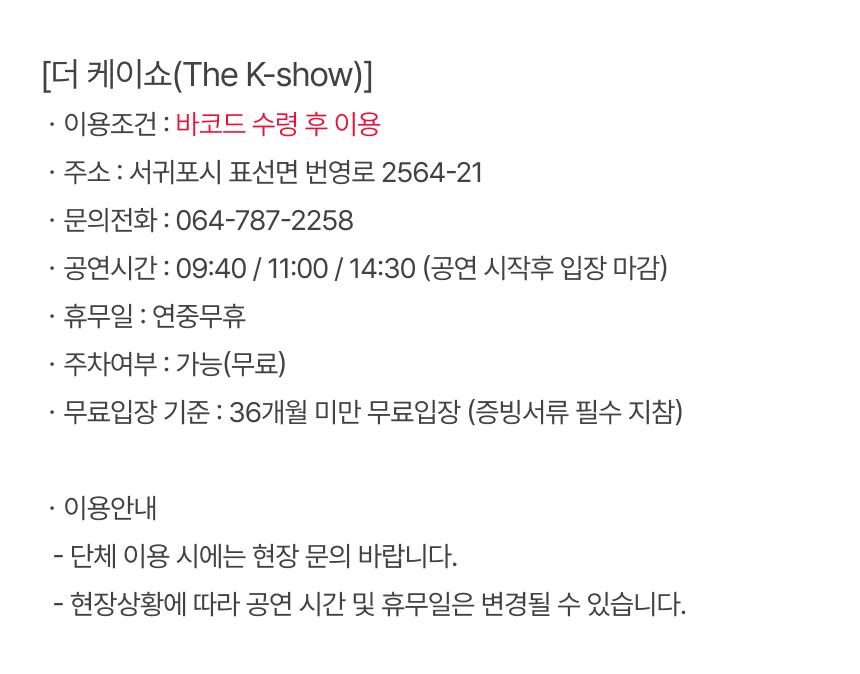 이용일자에 따라 운영시간이 상이합니다. 반드시 사전에 확인해주세요.