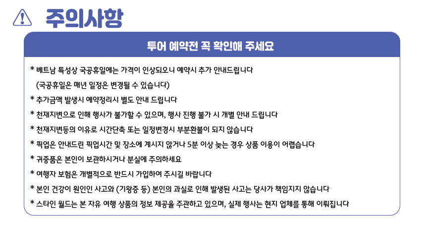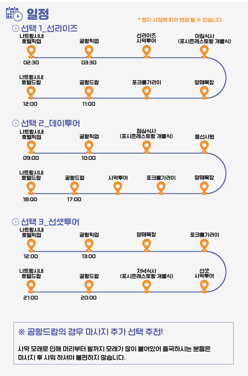 * 투숙하는 호텔 위치에 따라 미팅시간이 상이할 수 있습니다.