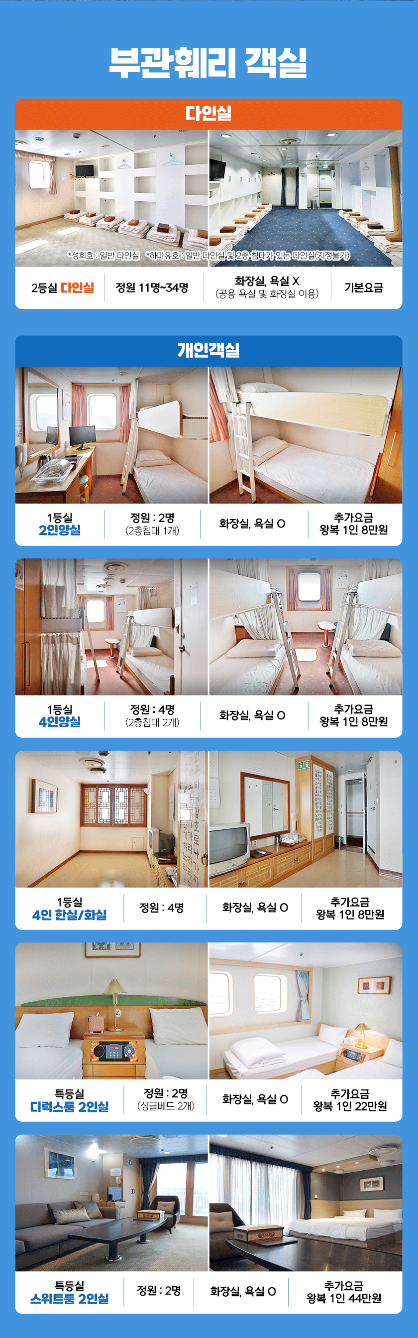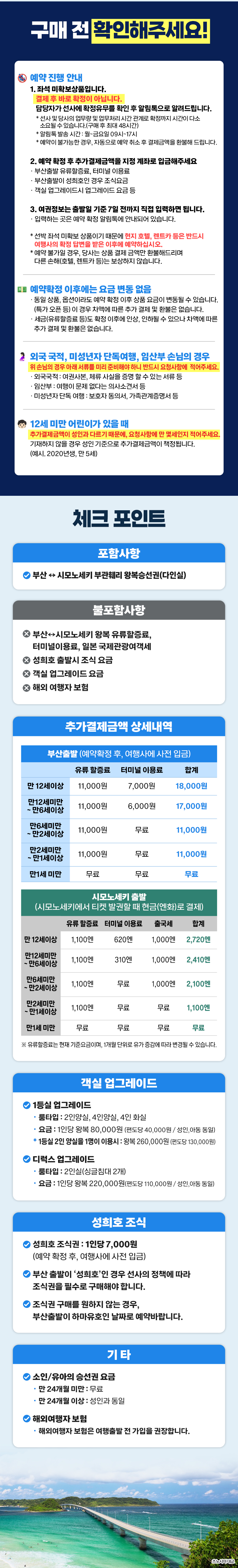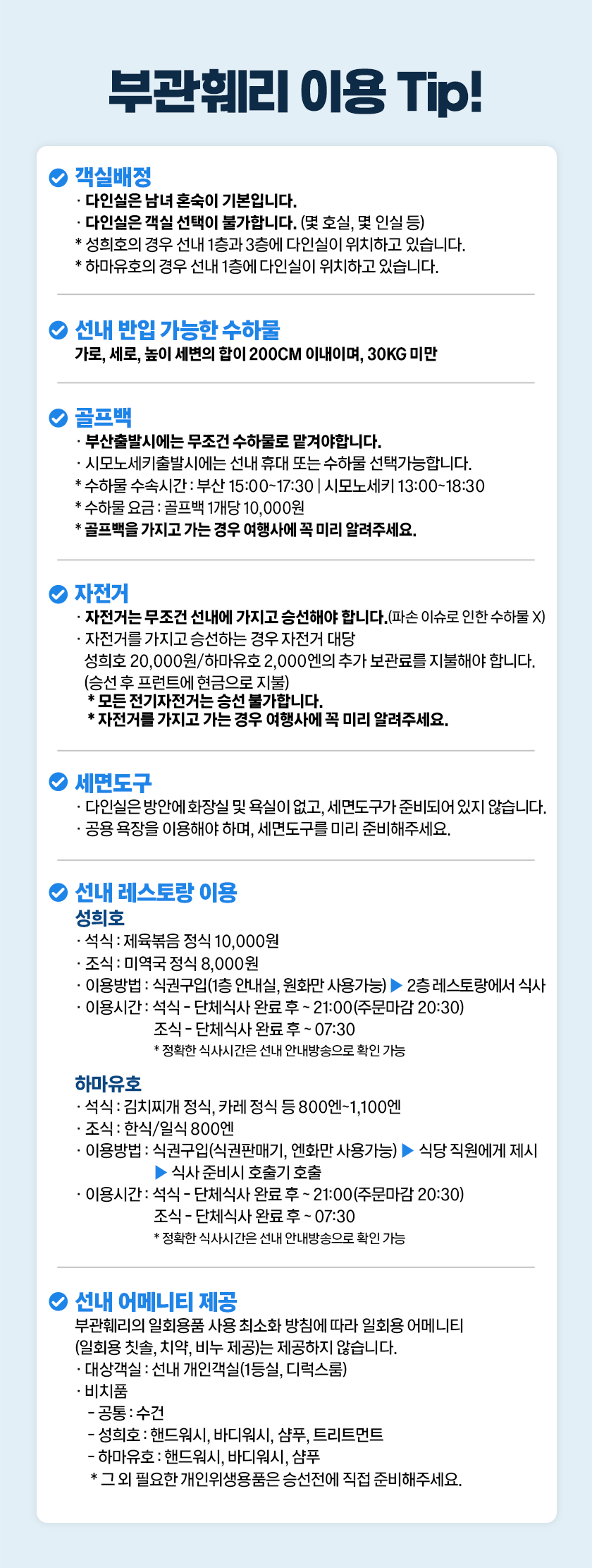 ※ 부산 출발이 '성희호'인 경우 선사의 정책에 따라 조식권을 필수로 구매해야 합니다.