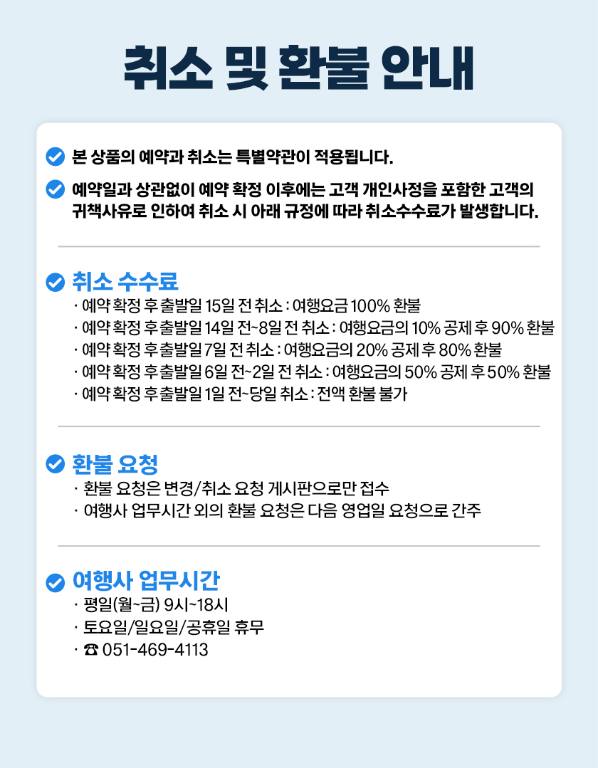* 발권수속 마감 시간 : 오후 18:00 (시간엄수)