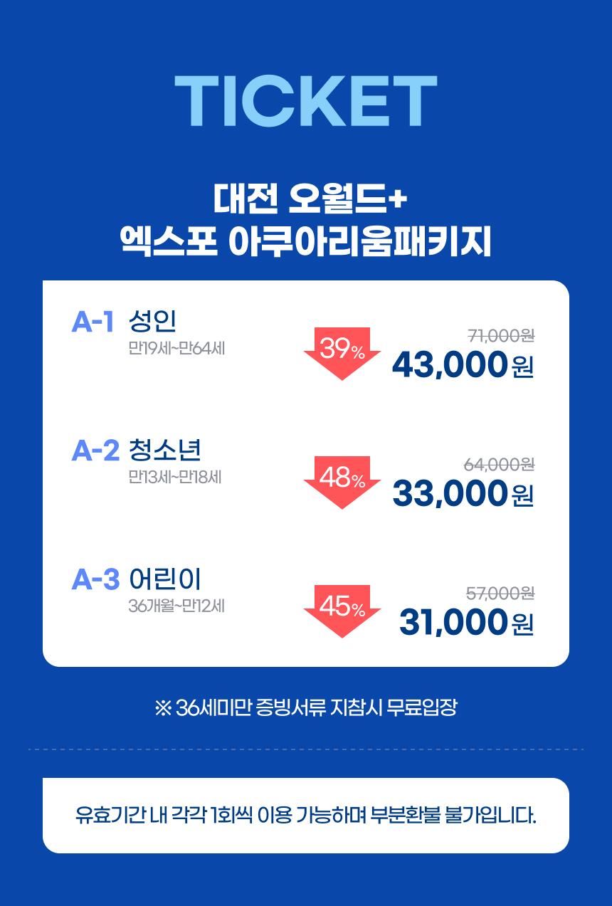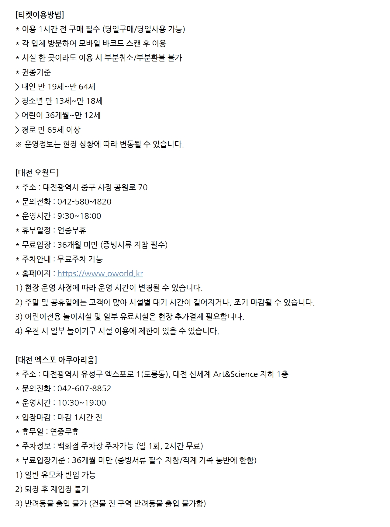 가족, 연인 혹은 친구와의 소중한 대전 여행! 충북 핫플레이스를 한 번에 알차게 즐기고 싶다면 대전 오월드와 엑스포 아쿠아리움을 함께 이용할 수 있는 패키지를 이용해 보세요.