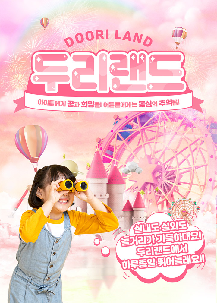 양주에 위치한 두리랜드는 어린이들을 위한 공간으로, 바이킹과 회전목마, 범퍼카 및 회전 그네 등 30여 종의 놀이시설과 야외 수영장이 있어요. 2층 키즈 플레이 파크에는 실내 튜브 썰매, 트램펄린 및 볼풀장이 있고 소꿉놀이를 할 수 있는 시설이 마련되어 있어 색다른 추억을 쌓아볼 수 있어요. 3층은 즐거운 놀이와 운동을 할 수 있는 암벽 등반장이 있고 짚라인 및 트램펄린도 준비되어 있으니 즐겁게 짜릿한 스릴감을 느껴보세요. 가족이 함께 즐길 수 있는 피규어 전시장과 미로에서 길찾기 및 야외 스포츠 테라스도 구비되어 있어 다양한 체험을 할 수 있어요.