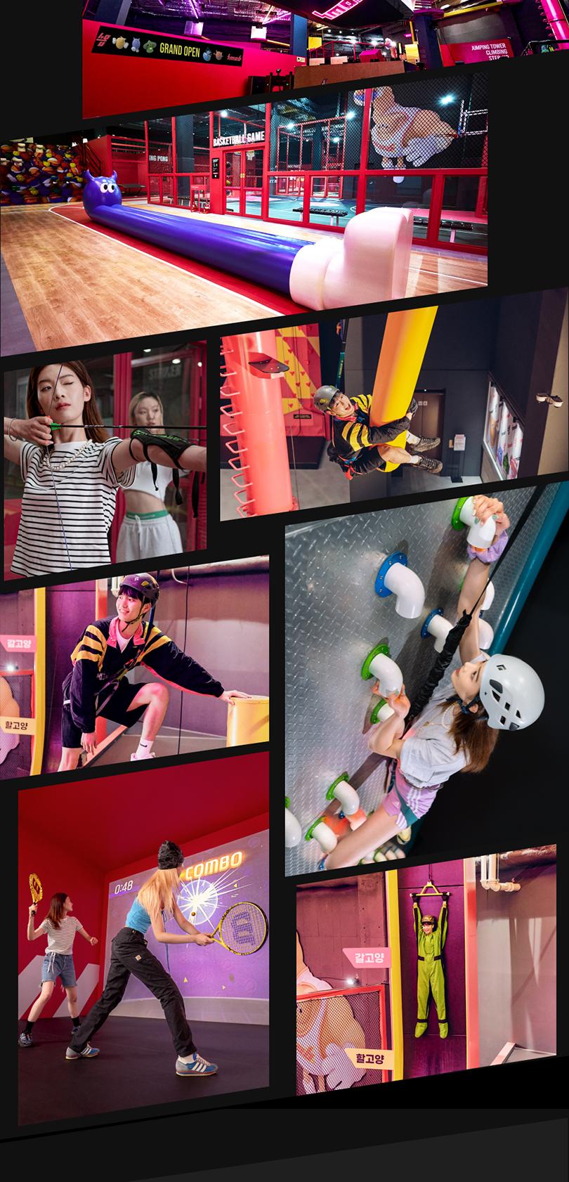 한국어 제공어른도 마음껏 뛰어놀 수 있는 국내 유일의 실내 스포츠 테마파크로, 플레이패스를 착용하는 순간 일상의 스트레스를 내려놓고 온전히 즐거움에 집중할 수 있는 공간입니다. 아찔한 높이의 로프 코스부터 속도감을 즐기는 트랙까지 다양한 액티비티가 마련되어 있어 몸을 움직이는 짜릿함과 성취감을 동시에 느낄 수 있으며, 네온사인과 역동적인 공간 연출이 더해져 마치 게임 속에 들어온 듯한 몰입감을 제공합니다. 어릴 적 놀이터의 순수한 즐거움을 현대적으로 재해석한 곳으로, 친구·연인과 함께 색다른 경험과 인생샷까지 남길 수 있는 도심 속 액티브 핫플입니다.