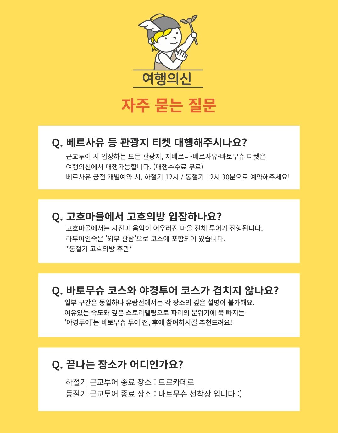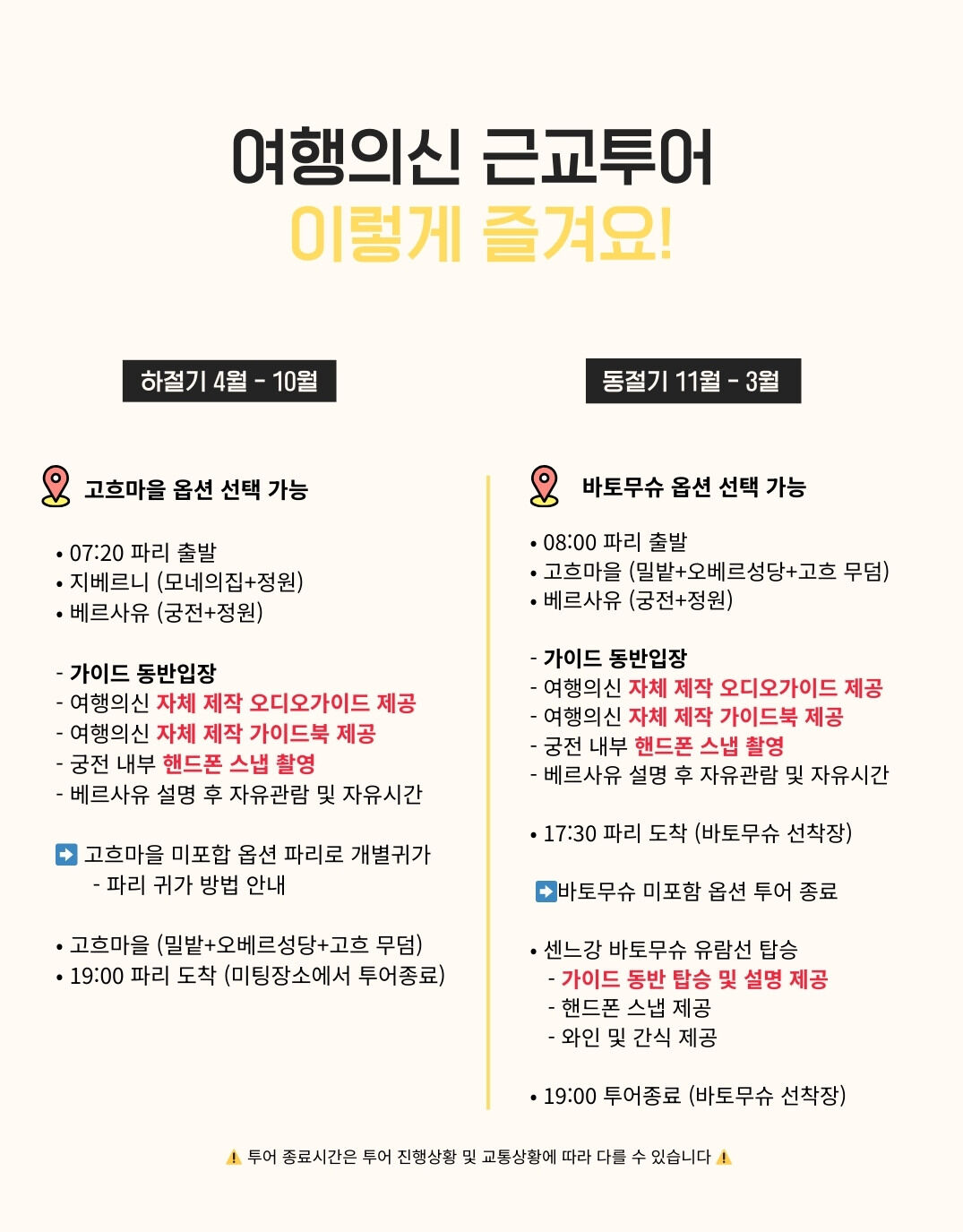 👉 지베르니와 베르사유 궁전(대행 요청 시), 유람선 등 입장료는 '투어 당일', 담당 가이드에게 유로(현금) 또는 한화 송금으로 지불해 주세요!