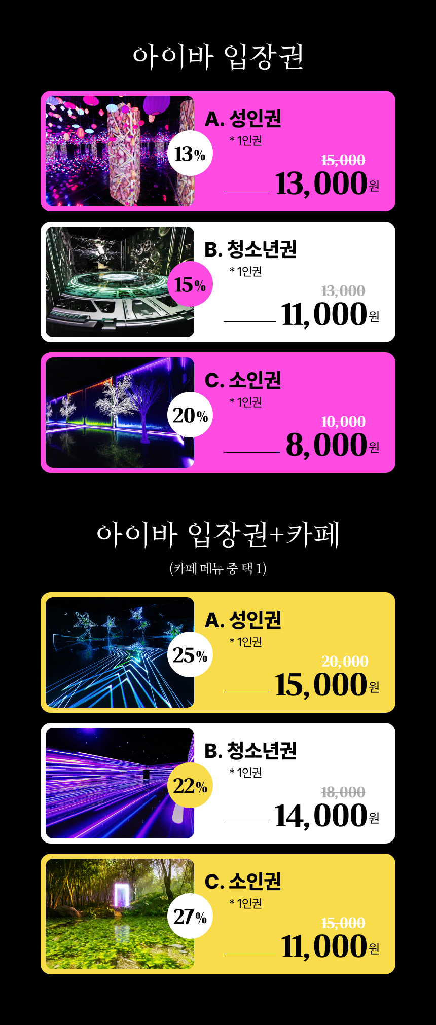 8개의 테마로 나누어진 아이바가든은 거대한 영상과 하나되어 직접 만지고 체험하며 느끼는 새로운 경험을 할 수 있어요. 창조적이고 혁신적인 미디어 예술 작품들이 전시되어 있고 넓은 공간의 미디어아트 전시관은 예술의 웅장함을 고스란히 전해요. 특히 다채로운 색깔의 예술을 보며 현실에 지쳐있는 몸과 마음을 치유할 수 있다는 아이바가든만의 장점을 갖고 있어요.