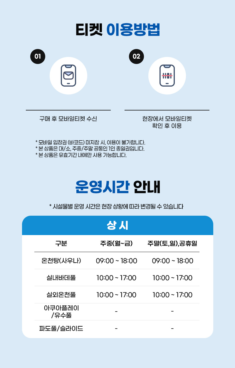 이용 전 반드시 공식 홈페이지에서 운영일자,운영시간,유의사항 확인 바랍니다.