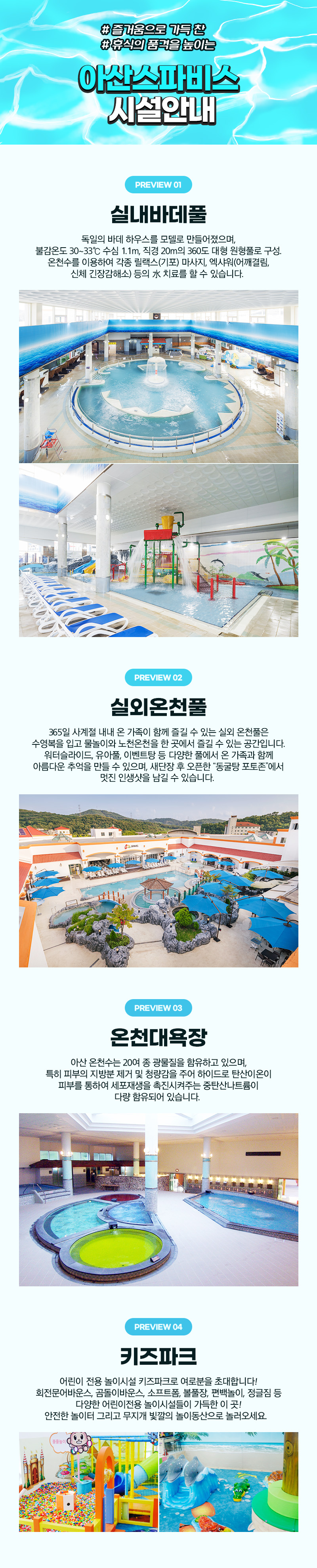 키즈카페가 준비되어 있어 아이는 물론, 남녀노소 즐길 수 있는 국내 최대 규모 아산 스파비스에서 가족 및 연인과 함께 특별한 추억을 만들어보세요.
