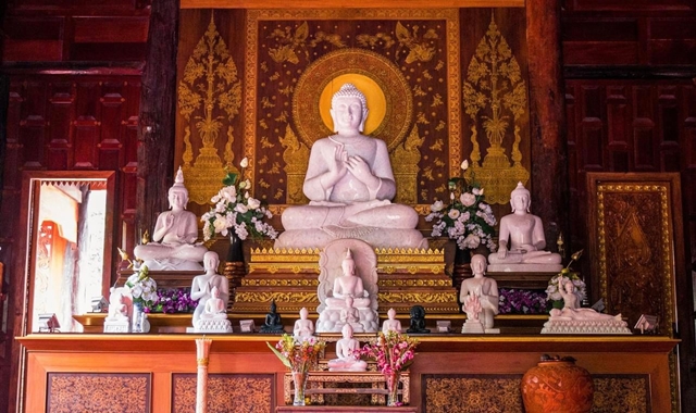 왓 타 사이 (Wat Ta Sai) 사원은 따사이 해변 근처의 소나무 숲 한가운데 위치해 있어요. 전통 태국 양식으로 설계된 티크 목재 건축이 특징이며, 특히 섬세한 조각들이 사원 곳곳을 장식하고 있는 모습이 인상적인 곳이에요. 사원 내부에는 인도 예술 양식의 백옥석으로 조각된 55인치, 높이 2.15미터의 웅장한 불상을 만나볼 수 있어요.