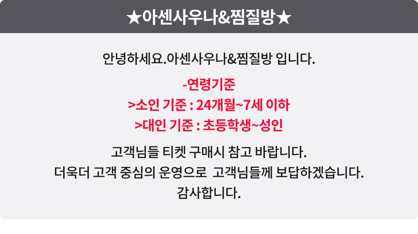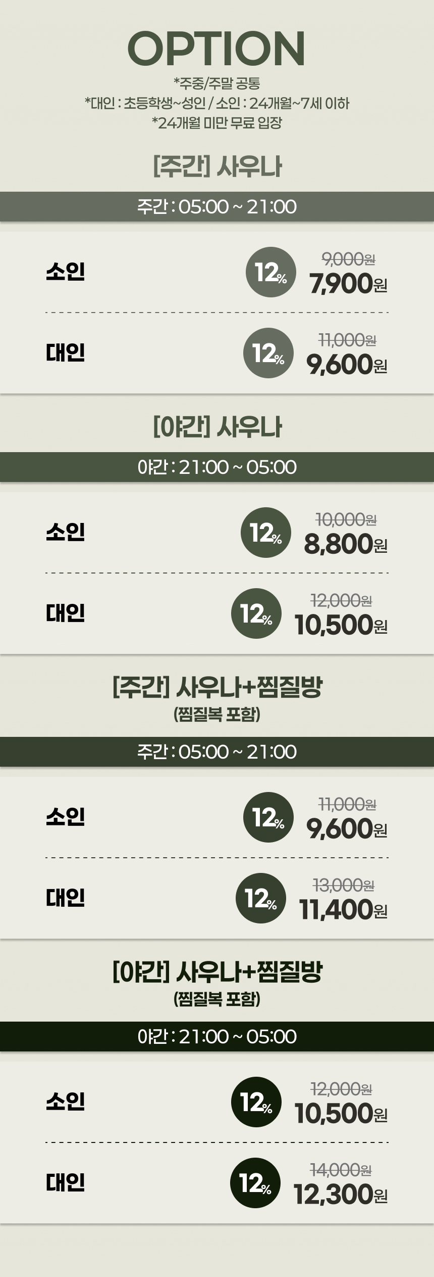 ※주간 입장 시 이용시간 : 오전 05:00 ~ 오후 21:00 / 야간 입장 시 이용시간 : 오후 21:00 ~ 오전 05:00