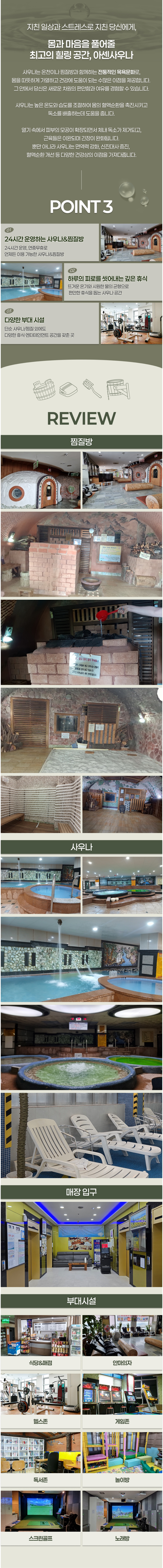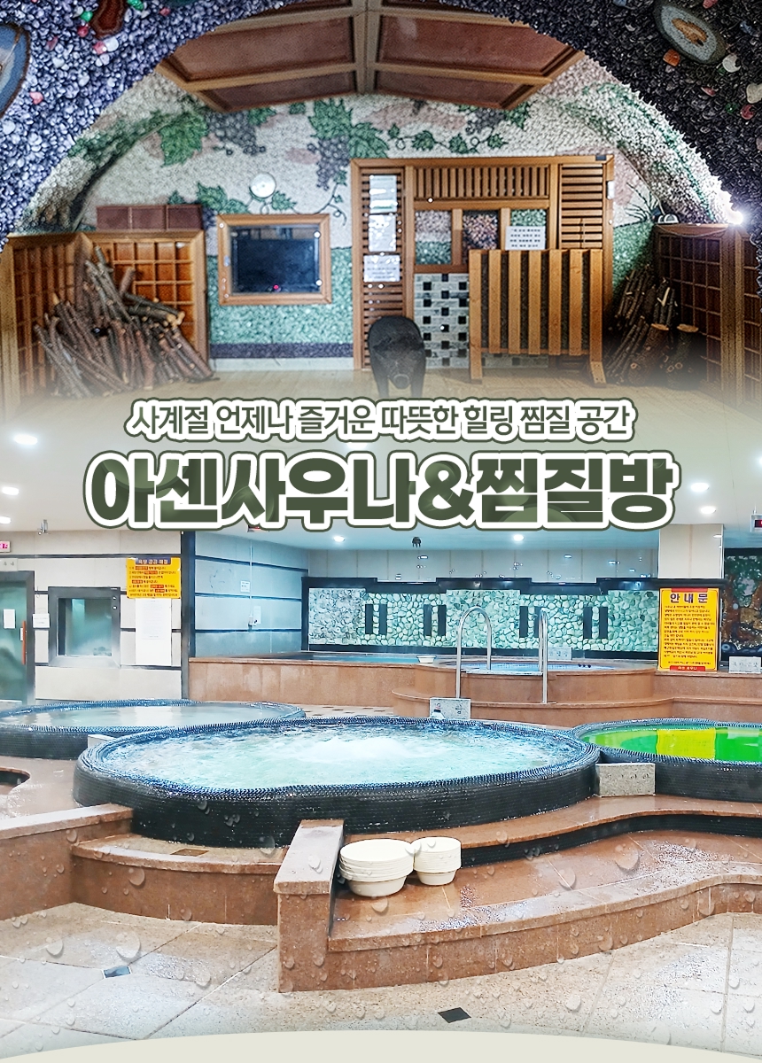일상에 지친 몸과 마음을 힐링하는 편안한 찜질 공간! 아센사우나와 함께 지친 일상을 잊고 따뜻한 찜질과 함께 여유를 만끽하세요. 다양한 찜질방과 사우나를 즐길 수 있어요. 특히, 스크린 골프장 및 노래방, 헬스존과 독서존 등 색다른 부대시설도 이용할 수 있어요.