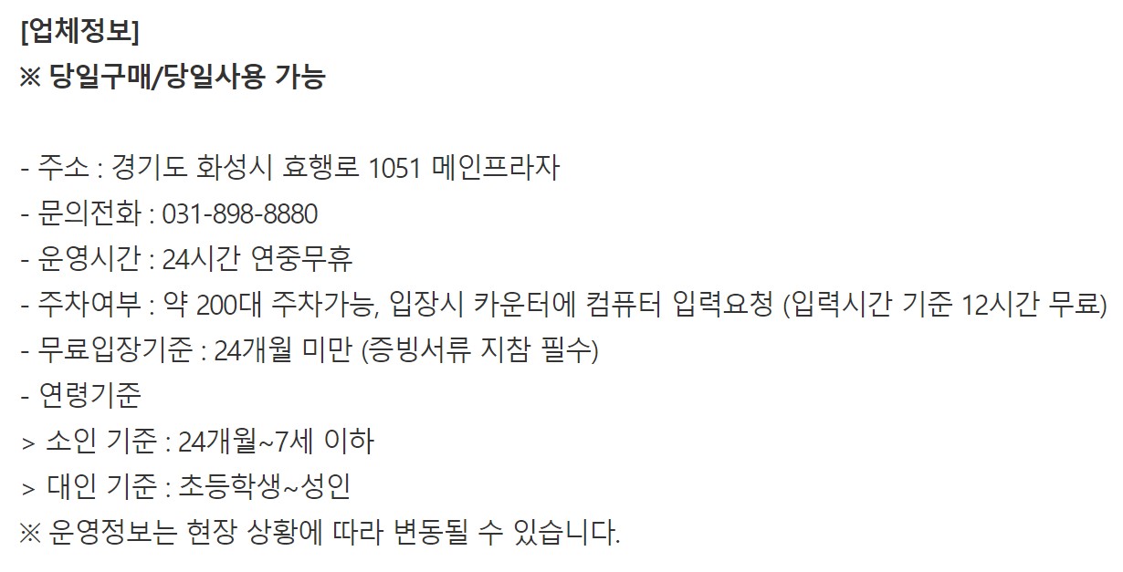 ※ 운영정보는 현장 상황에 따라 변동될 수 있습니다.
