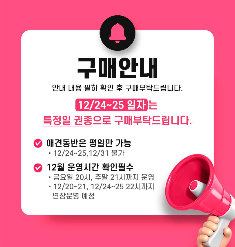 월~목요일 : 오전 10:00 ~ 오후 18:00 (※ 12월 31일은 오후 21:00까지 운영)
