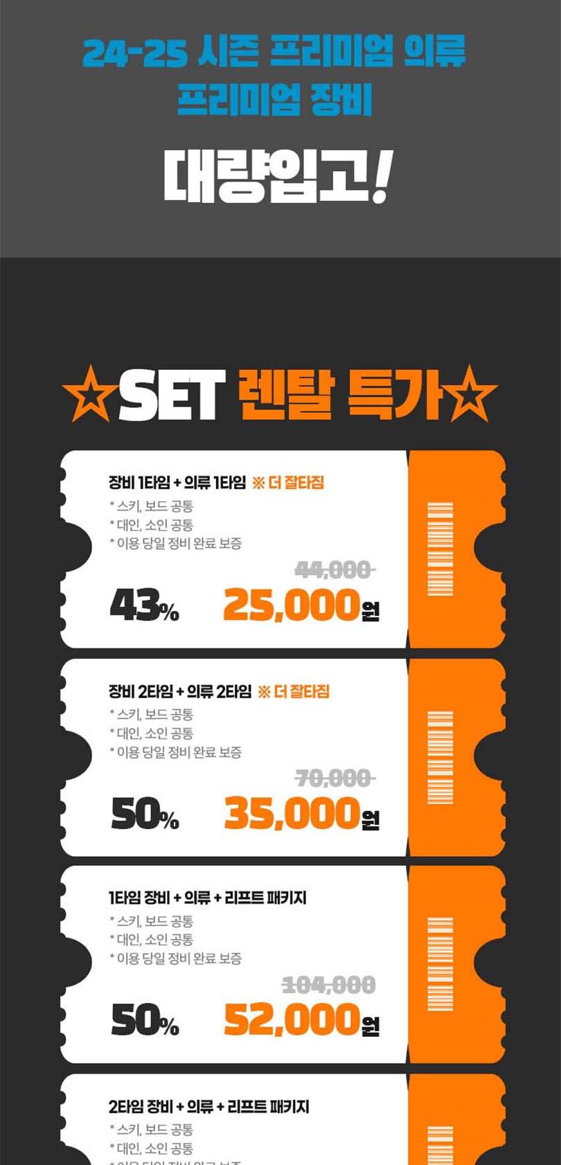 저렴한 가격으로 장비·의류·리프트권을 한 번에 해결하고 싶다면, 이번 겨울 ‘더 잘타짐’에서 더욱 편리하고 알찬 스키&보드 여행을 즐겨보세요. ❄️⛷️🏂✨
