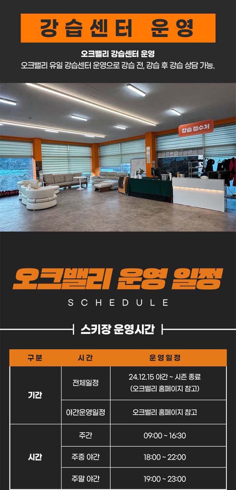 신규 오픈으로 더욱 깔끔해진 인테리어와 넓은 공간에서 신상 의류와 다양한 스키·보드 장비를 한 번에 렌탈할 수 있으며, 1일 1회 세심한 장비 점검 및 튜닝으로 누구나 만족할 만큼의 퀄리티를 제공합니다. 오크밸리까지 도보 3분 거리의 뛰어난 접근성 덕분에 이동도 편하고, 초대형 인생 포토존에서 겨울 감성 가득한 인증샷까지 남길 수 있어요. 여기에 체계적으로 운영되는 직영 강습센터가 있어 처음 타는 분들도 전문가에게 기초부터 제대로 배울 수 있는 장점까지!