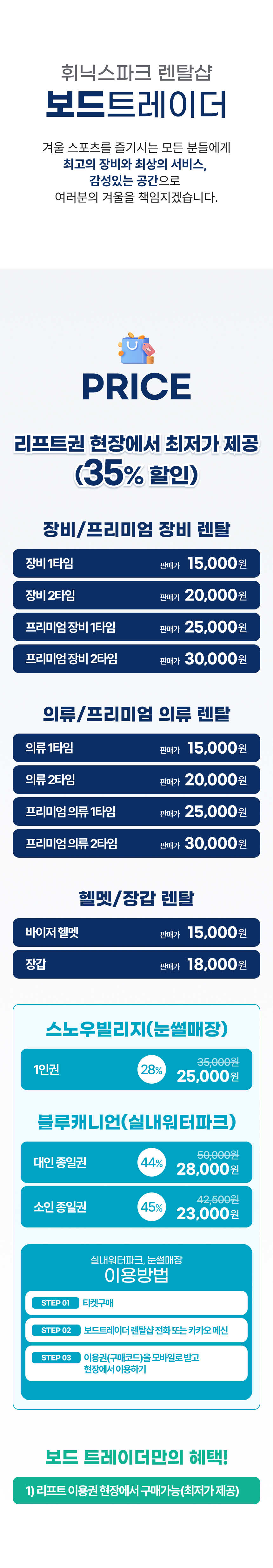 한국어 제공보드트레이더는 국내 최초의 프리미엄 프랜차이즈 렌탈샵으로 프리미엄 장비와 의류, 강습까지 한 번에 완료할 수 있는 곳이에요. 겨울 스포츠를 즐기시는 모든 분에게 최고의 장비와 최상의 서비스, 감성 있는 공간으로 겨울을 책임질게요.