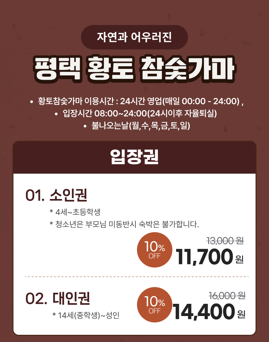 실내뿐만 아니라 야외 사우나도 준비되어 있으니 자연을 느끼시며 피로를 푸실 수도 있어요! 평택 황토참숯가마에서 자신에게 건강과 행복을 선물하는 시간을 보내보시는 것을 추천드려요!